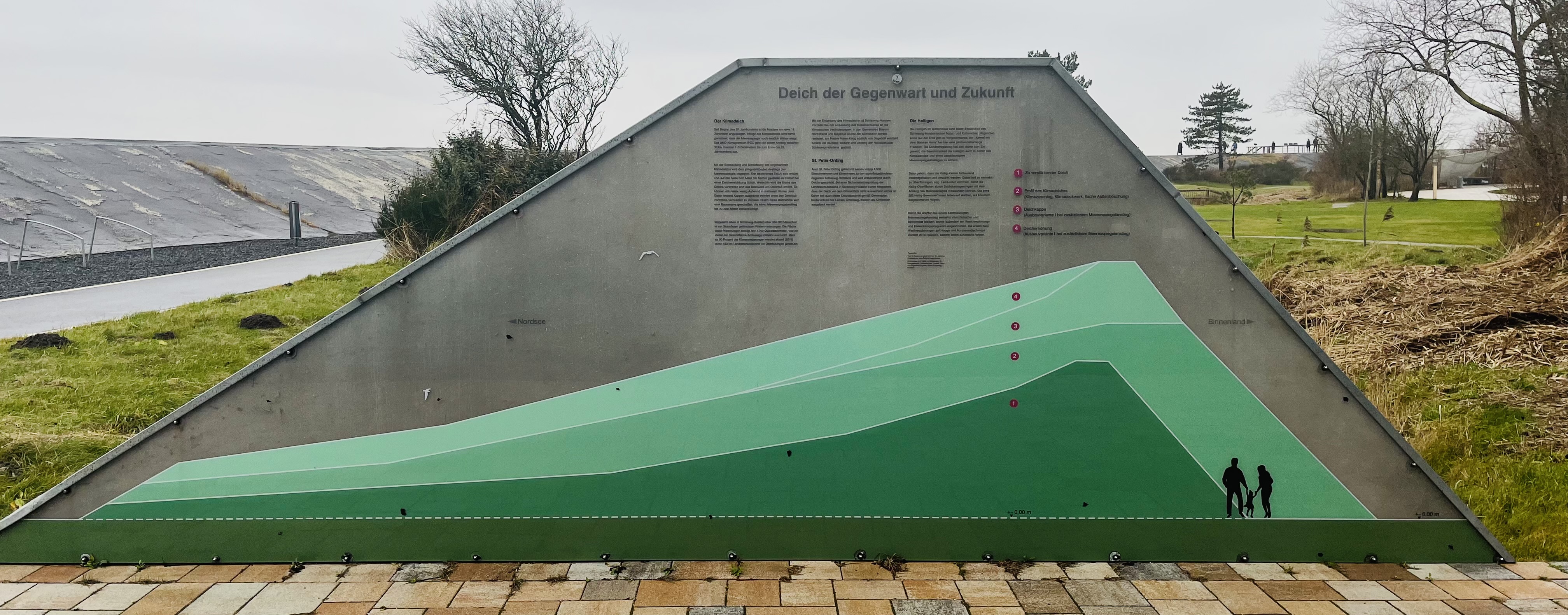 Durch die weiter steigenden Meeresspiegel ist neben dem Deicherhalt und der -pflege die Schutzverbesserung angezeigt. Das Land Schleswig-Holstein baut die Klimadeiche! Schauen Sie hier: Schutz bei steigenden Waseerständen: Klimadeiche . Dazu die offizielle Broschüre "Sturmflut - Wat geit mi dat an?"